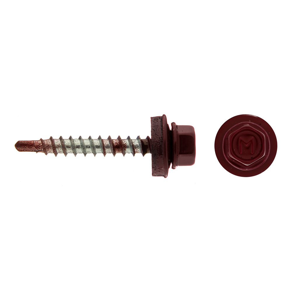 Саморезы кровельные с буром 35х4,8 мм металл-дерево красное вино RAL 3005 (60 шт.)