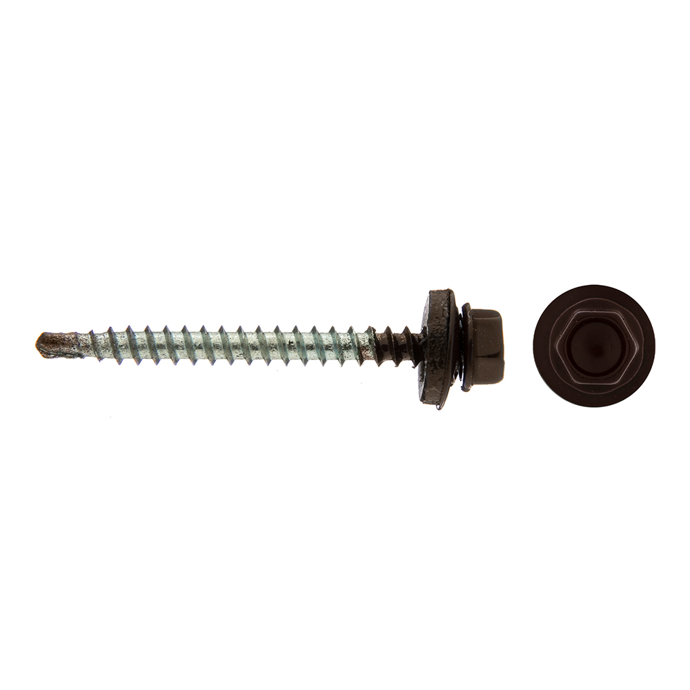 Саморезы кровельные с буром 50х4,8 мм металл-дерево коричневые RAL 8017 Daxmer (250 шт.)