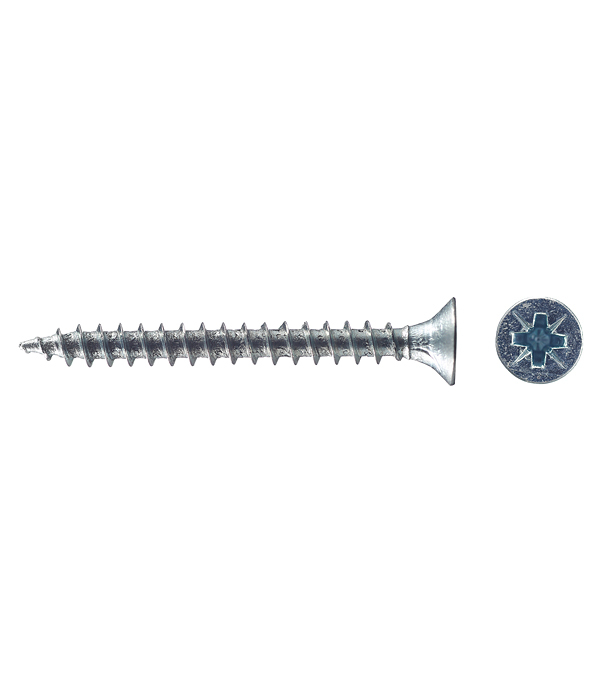 Саморезы имеют потайную головку с крестообразным шлицем PZ 1 и острый наконечник. Производятся из оцинкованной стали.