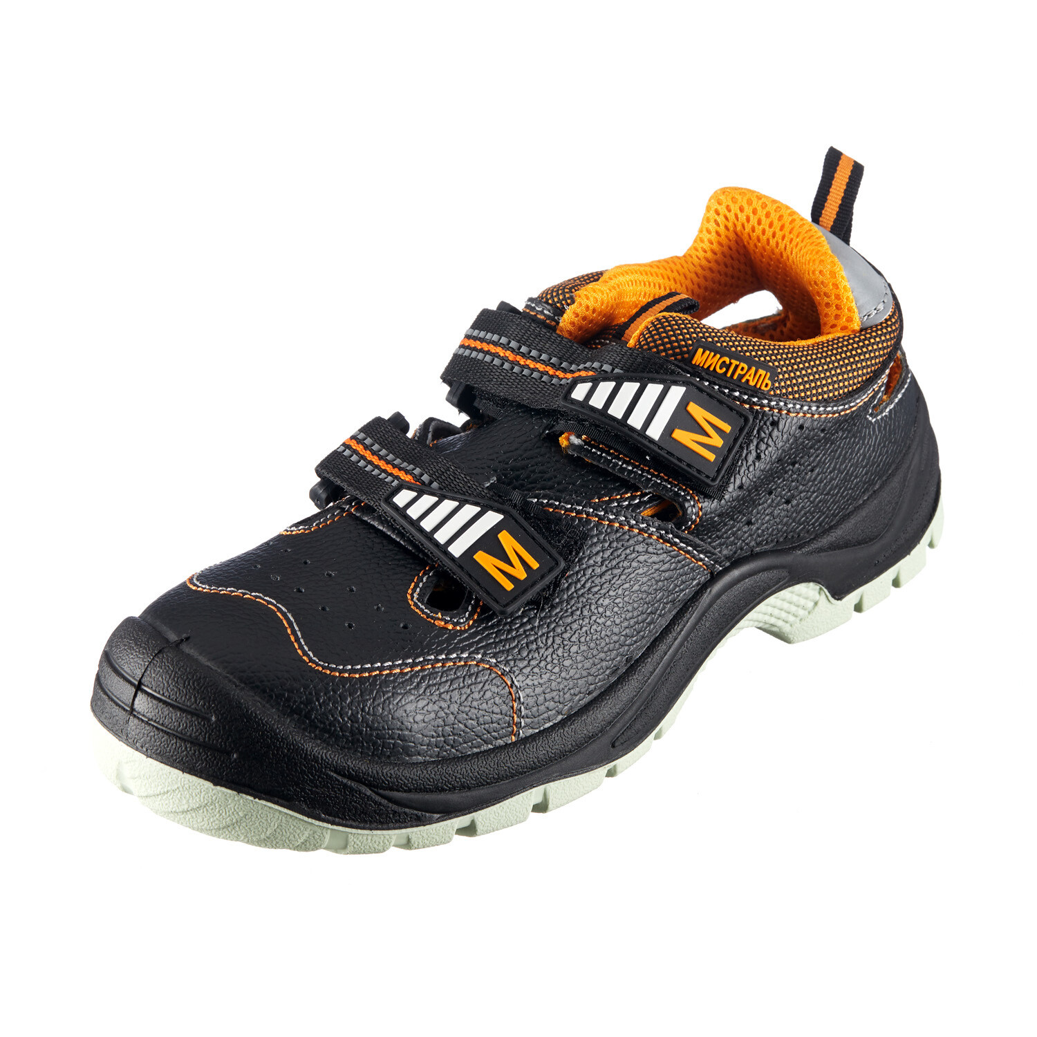 Сандалии кожаные с перфорацией и защитным подноском и стелькой размер 44 черные Мистраль SJ4000 (119893)