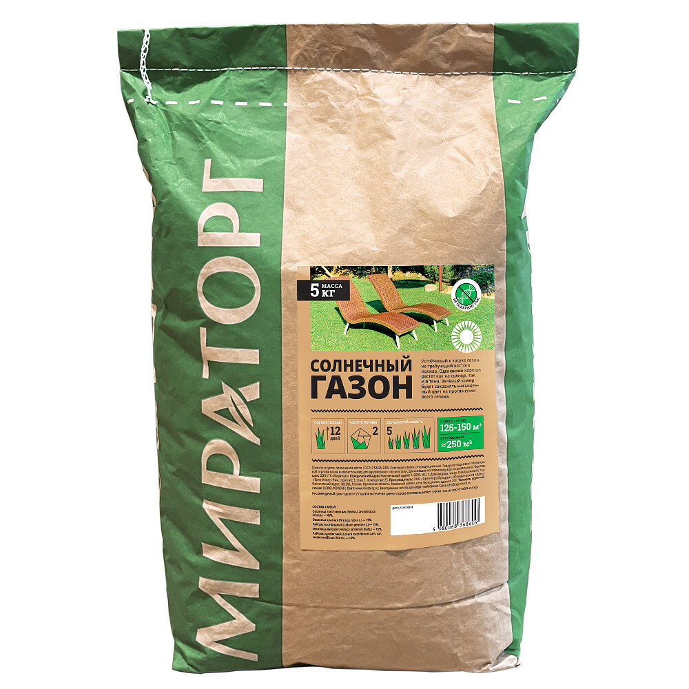 Семена газонной травы Солнечный газон Мираторг 5 кг