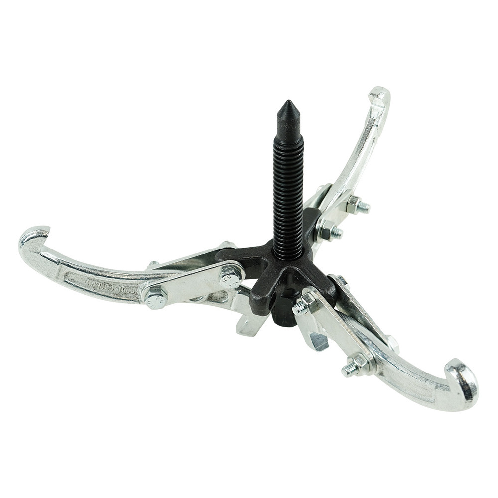 Профессиональный съемник, применяется для демонтажа внутренних и наружных подшипников, шестерней, шкивов и прочих элементов с валов и других деталей, в том числе установленных с натягом. Конструкция съемника допускает широкий диапазон регулировки размеров для разнообразных деталей, позволяет менять количество захватов на 2 или 3 в зависимости от вида выполняемых работ. Наличие двух точек фиксации (крепежных отверстий) на каждом захвате, позволяет менять длину вылета. Двухсторонние захваты позволяют подобрать оптимальное положение инструмента на детали. Шарнирное соединение съемников допускает широкий диапазон регулировки. Захваты изготовлены методом горячей ковки и закалены, центральный винт съемника имеет трапецидальную накатанную упорную резьбу и конусную опору, на захватах установлены соединительные болты класса 8.8, все это обеспечивает надежность и прочность инструмента, а также продлевает его срок службы при повышенных нагрузках.