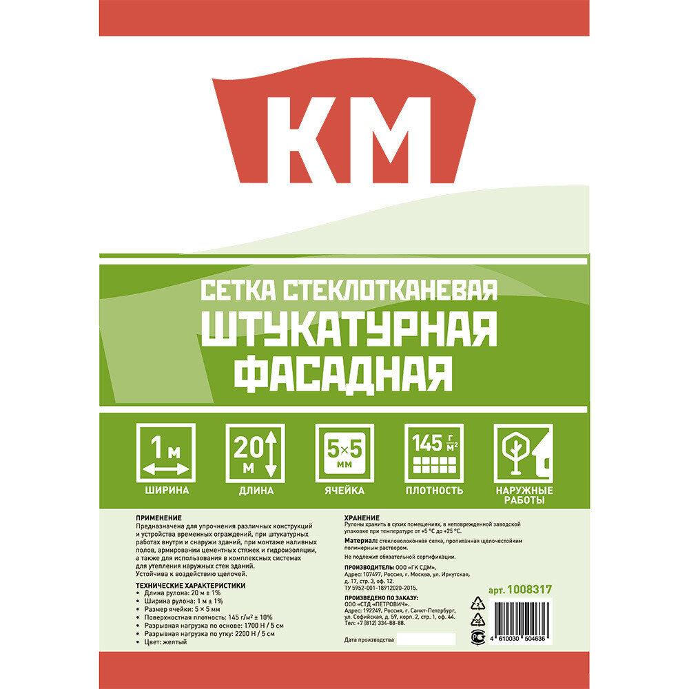 Сетка фасадная стеклотканевая ячейка 5х5 мм 1х20 м 145 г/кв.м КМ