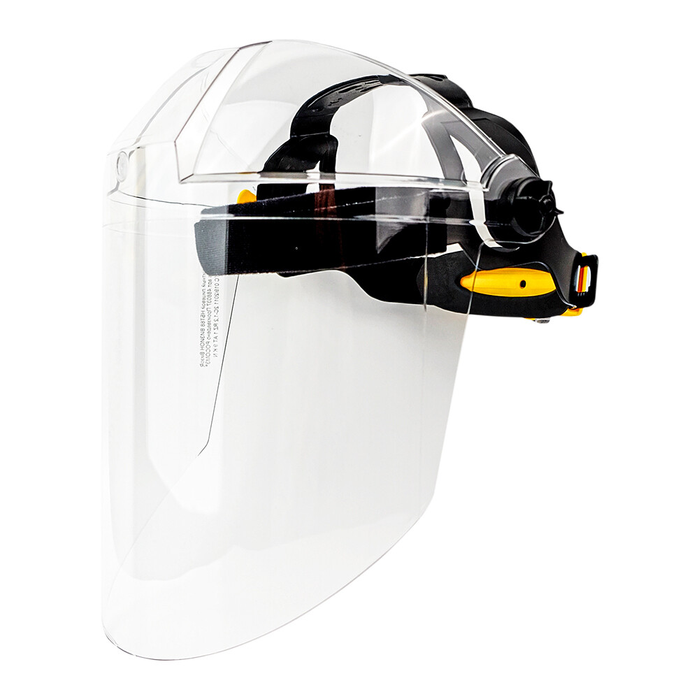 Для защиты лица при обработке металлов с использованием охлаждающих жидкостей; работах, связанных с возможным образованием осколков, в химических лабораториях при выполнении работ, связанных с разбрызгиванием агрессивных жидкостей, работе с пневмо- и электроинструментами. Защищает от высокоскоростных летящих частиц с высокоэнергетическим ударом (не более 14,9 Дж). Наголовное крепление RAPID с мягким обтюратором. Полностью прозрачная монолитная удлинённая снизу лицевая часть из ударопрочного и термостойкого поликарбоната.