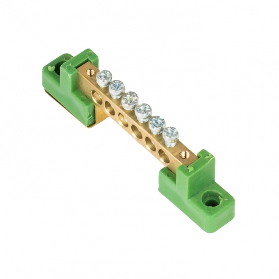 Шина нулевая на 2-х угловых изоляторах EKF PROxima 6х9 мм 6 отверстий зеленая (20 шт.) (sn0-63-06-2-pe)