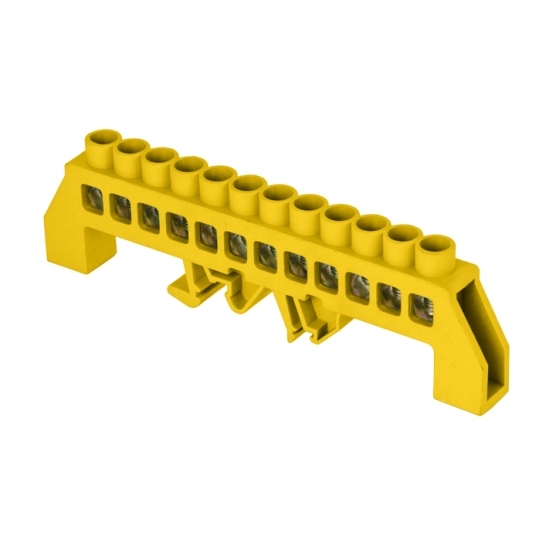 Шина нулевая в нейлоновом корпусе на DIN-рейку EKF PROxima 8х12 мм 12 отверстий желтая (20 шт.) (sn0-125-12-dpe)