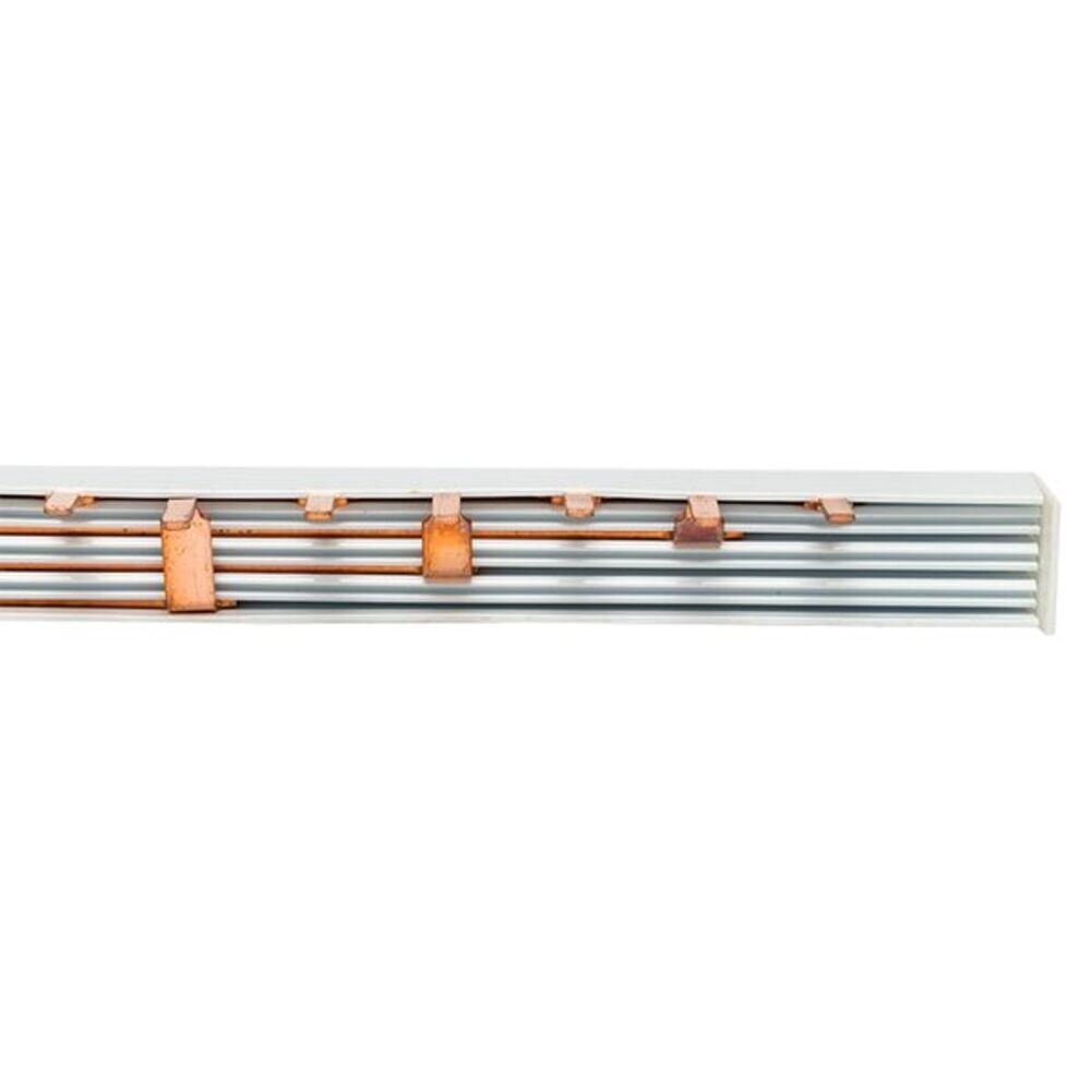 Шина соединительная представляет собой пластину, выполненную из меди, закрепленную в корпусе из диэлектрического материала, не поддерживающего горение, и выпускается стандартной длиной 1 метр.