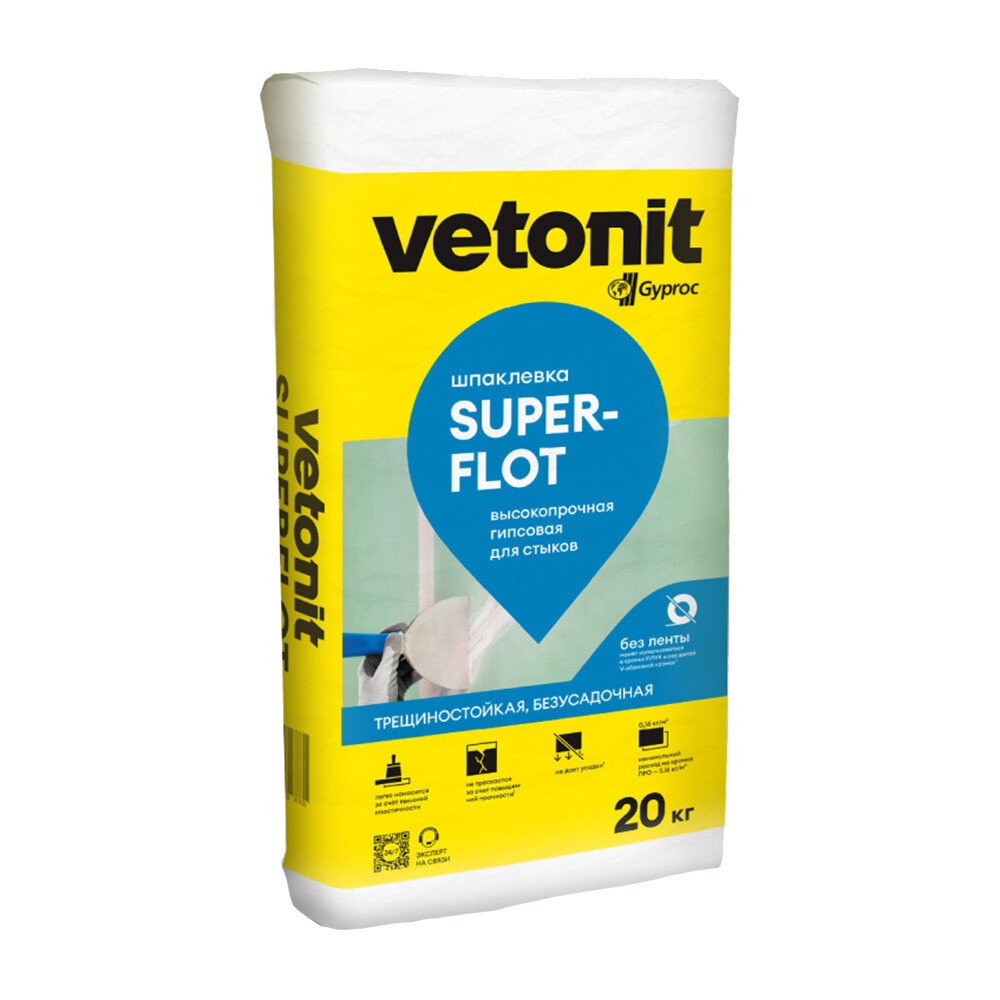 Шпаклевка гипсовая Vetonit Суперфлот высокопрочная безусадочная белая 20 кг