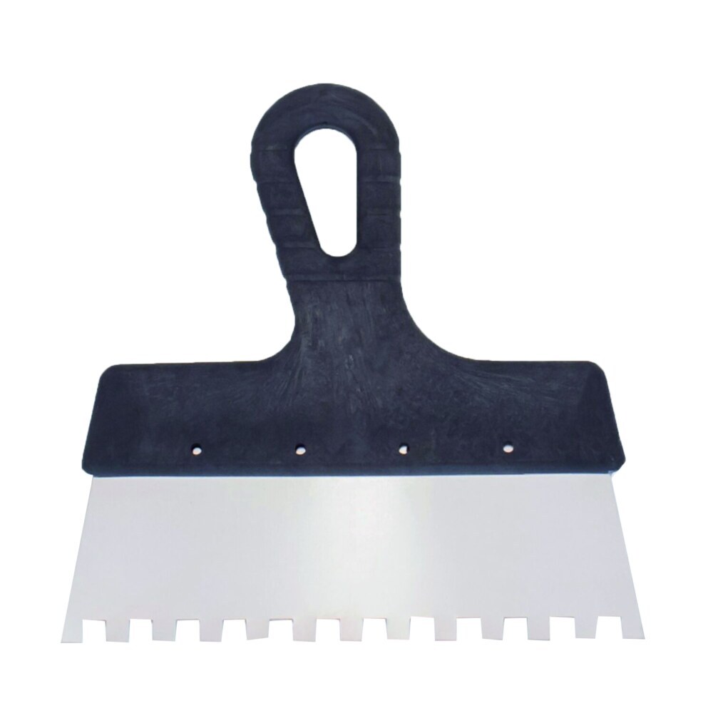 Зубчатый шпатель нержавеющая сталь,подойдет для раствора или плиточного клея. Инструмент позволяет эффективно и быстро выровнять слой.