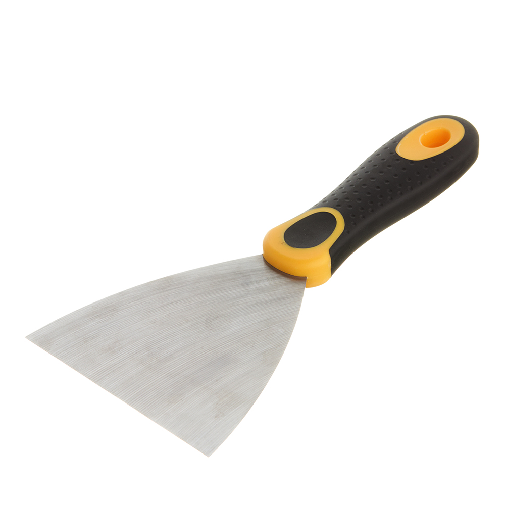 Шпатель из нержавеющей и лакированной стали, усиленный. Рукоятка изготовлена из двухкомпонентного материала.
