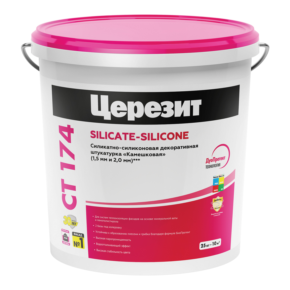 Штукатурка фасадная Церезит CT 174 силикатно-силиконовая камешковая 2 мм 25 кг