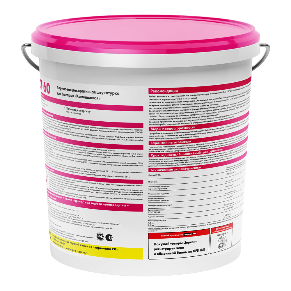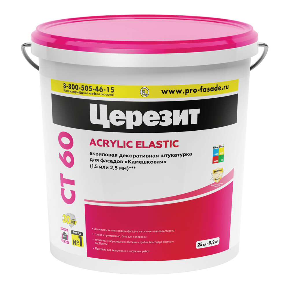 Штукатурка фасадная Церезит CT 60 камешковая акриловая 1,5 мм 25 кг