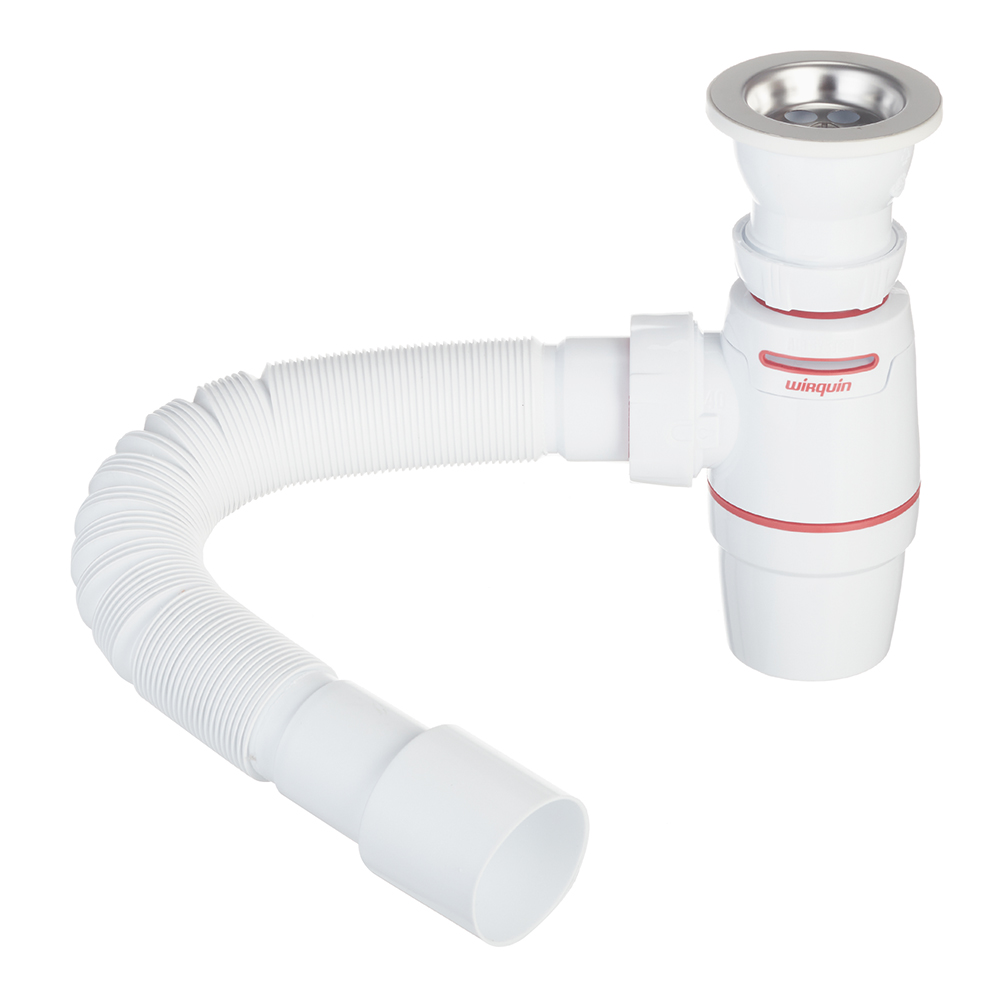 Преимущества: Использована технология двухкомпонентного литья, нет риска протечек и потери прокладок — прокладки интегрированы в корпус сифона. Простота установки с функцией QUICK SAFE (Быстро и Безопасно), гарантирует быструю и надежную установку благодаря гайке, закручивающейся в 1/4 оборота. Инновационная функция AIR SYSTEM воздушный клапан заменяет традиционные вентиляционные клапаны и предотвращает возникновение шума и неприятных запахов. WIRQUIN NEO AIR позволяет естественно вентилировать трубы: когда давление в трубах понижается, мембрана WIRQUIN NEO AIR поднимается и создает постоянную вентиляцию, чтобы предотвратить всасывание воздуха и воды из гидрозатвора. Легкость очистки: стакан сифона просто раскручивать, открывание в 1/4 оборота