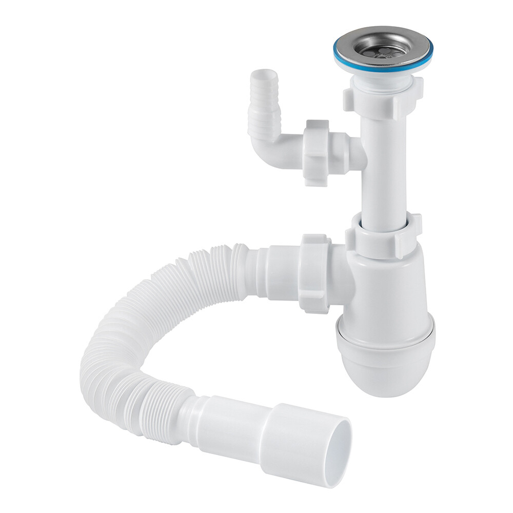 Сифон для раковины АНИ пласт 1 1/4х40 мм с выпуском 40/50 мм с соединением 40/50 мм с отводом белый (C1315)