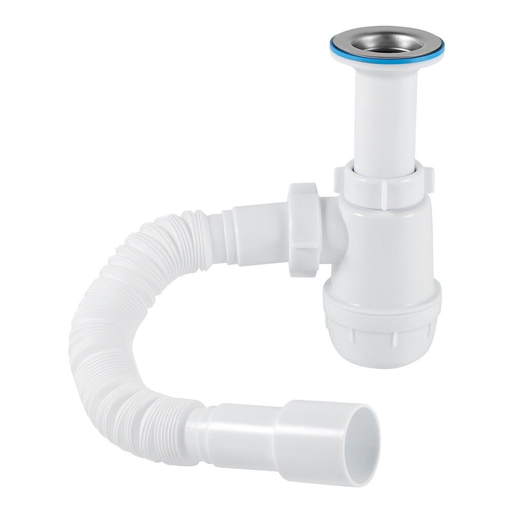 Сифон A0515 имеет гибкую трубу 40х40/50. Форма сифона позволяет поддерживать хорошую пропускную способность слива сточной воды, выполняя свою главную функцию — формирование гидрозатвора для отсечения неприятных запахов из канализации. Конструкция позволяет легко, без демонтажа, снять отстойник (стакан) и почистить сифон в случае засорения, достать случайно упавшие в слив раковины мелкие ценные вещи. Сифон прост в установке.