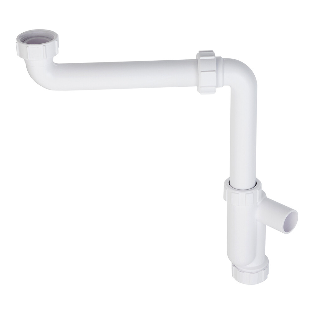 Сифон трубный P-образный для раковины без выпуска с отводом.