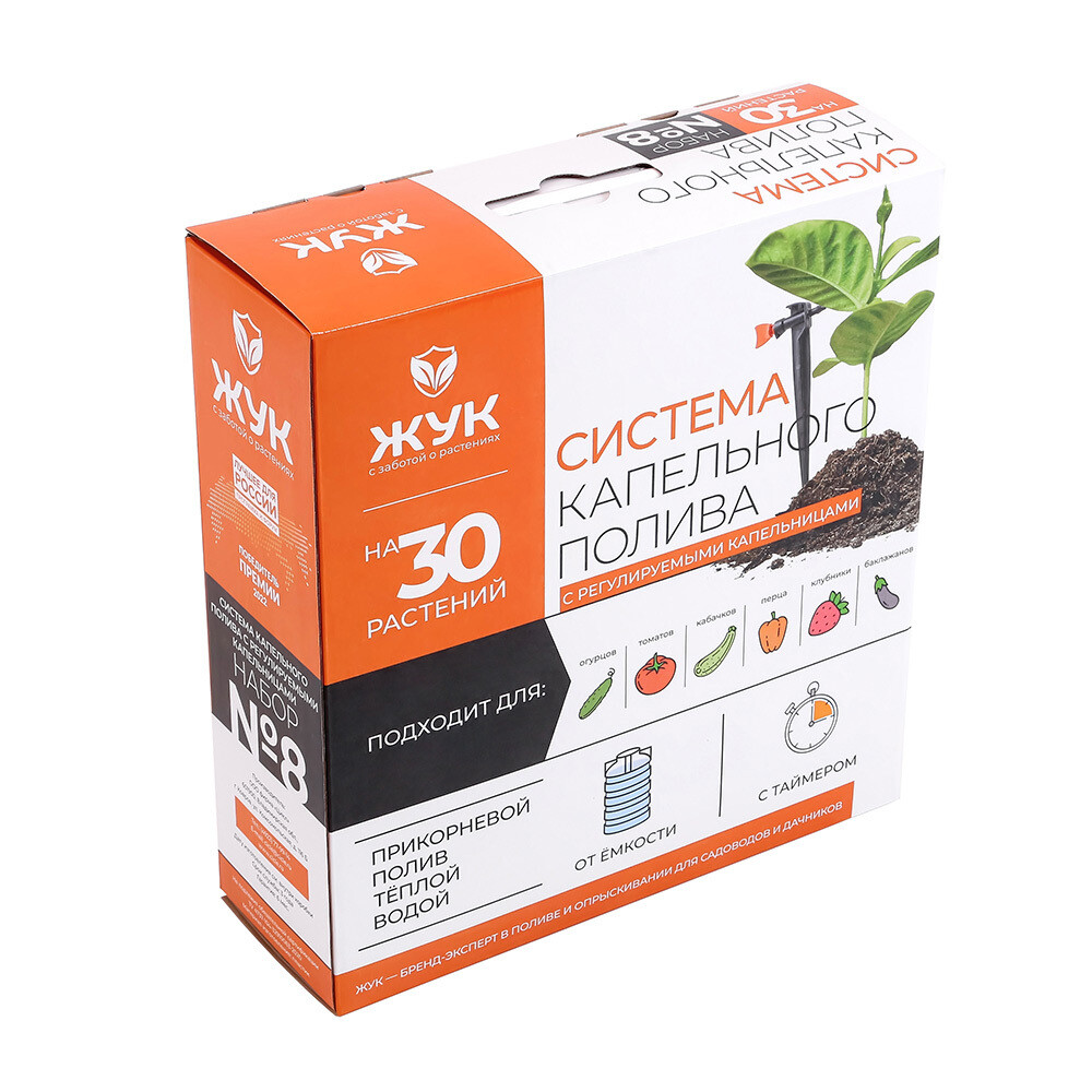 Система капельного полива от емкости Жук №8 с регулируемыми капельницами на 30 растений с тайм (7343-00)