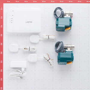 Модуль управления Neptun Smart — 1 шт., Датчик Нептун SW 005 — 3 шт., Кран шаровый с электроприводом Neptun Bugatti Pro 12В — 2 шт., Блок питания 12В — 1 шт.