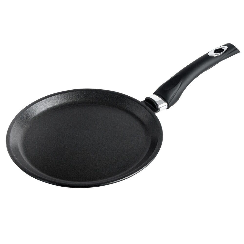 Блинная сковорода с антипригарным покрытием – литая алюминиевая посуда, которая подходит для газовых, электрических и стеклокерамических плит. При минимальном использовании масла получаются тонкие блины и пышные оладьи.