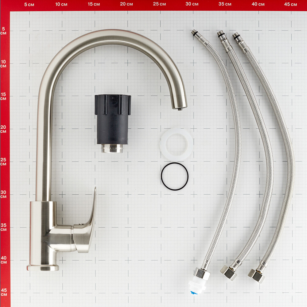 Смеситель для кухни Milardo Rora сатин с высоким изливом с подключением к фильтру однорычажный (RORBNFJM05)