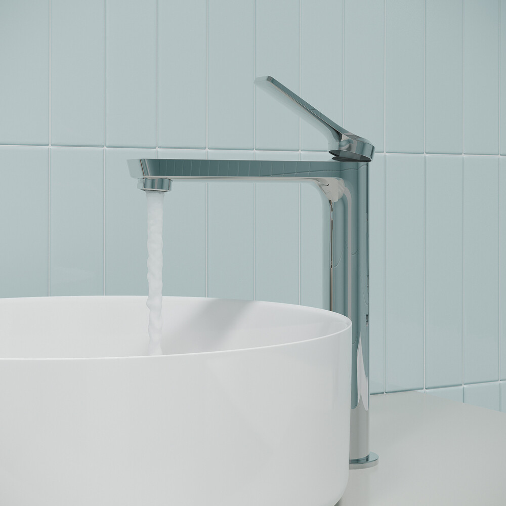 Смеситель Parker выполнен из латуни в цвете хром. Ручка изящно смотрит вверх под углом, освобождая под собой место для более удобного захвата. Высота 222 мм позволяет с комфортом использовать его с накладными умывальниками. Керамический картридж обеспечивает точную регулировку температуры и напора воды за счет особенно плавного хода ручки смесителя.