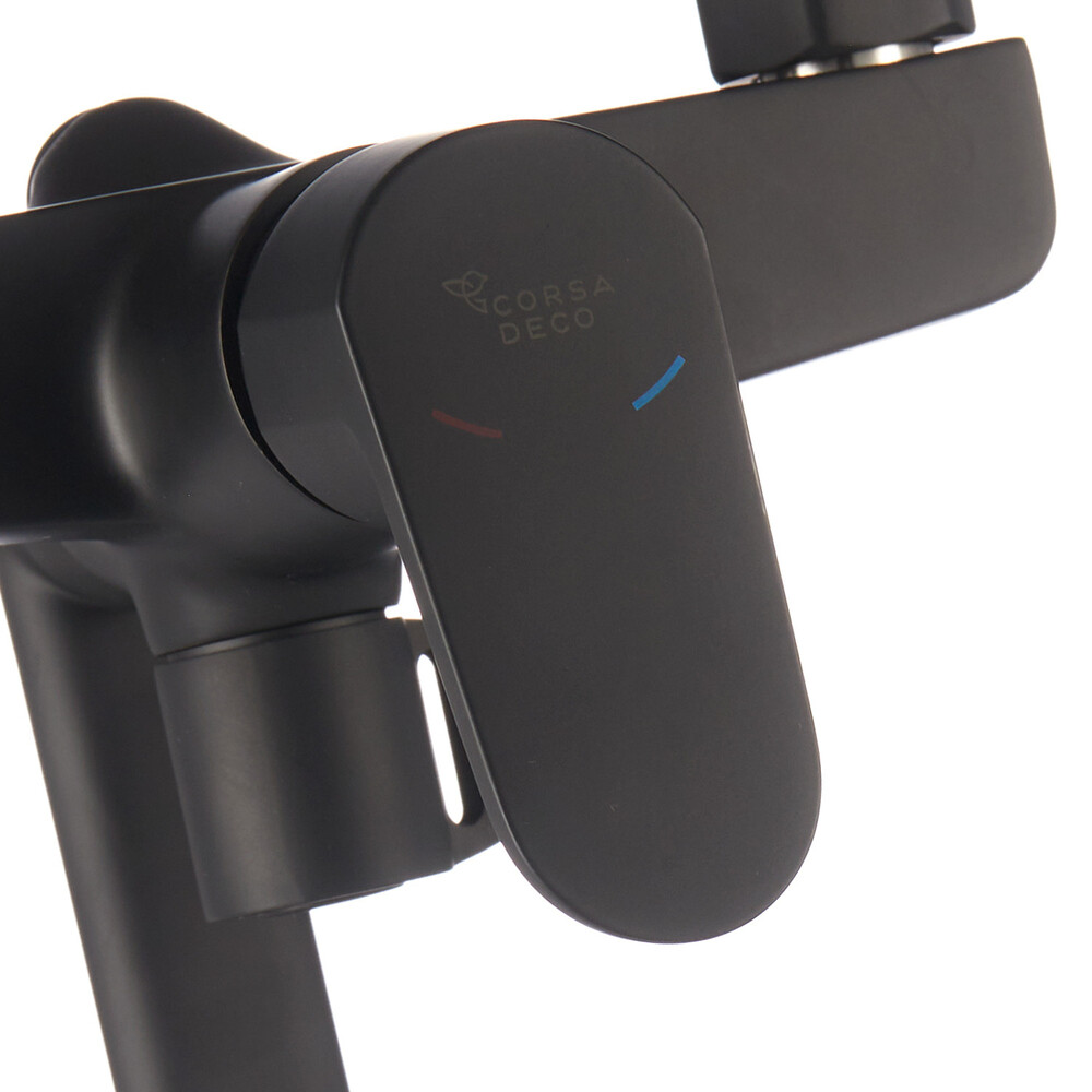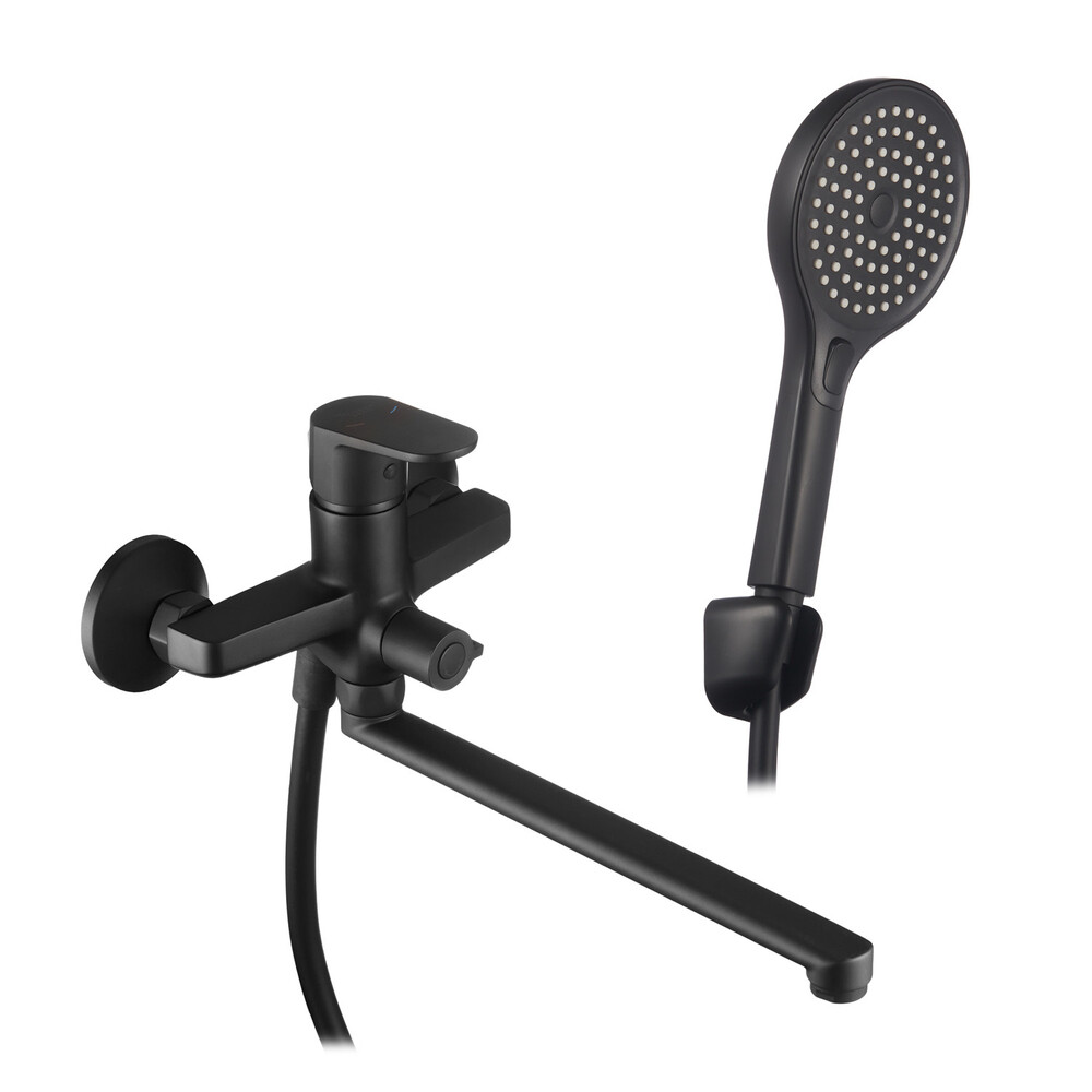 Смеситель для ванны Corsa Deco CX черный матовый однорычажный с длинным изливом с лейкой (FBTCX3B)