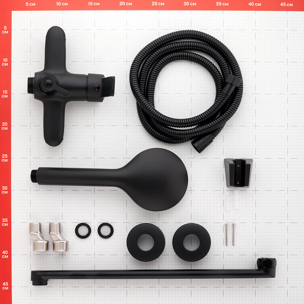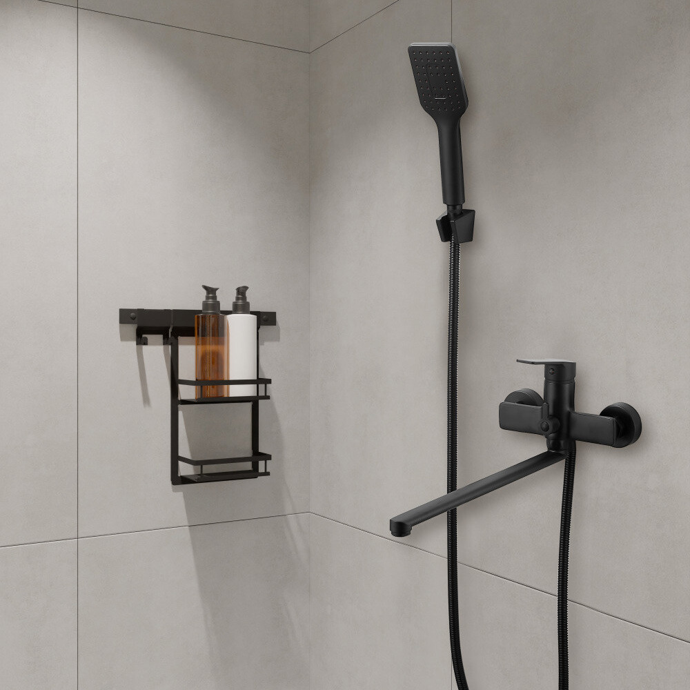 Смеситель для ванны черный однорычажный с длинным изливом и лейкой. Предназначен для ванны и душа.