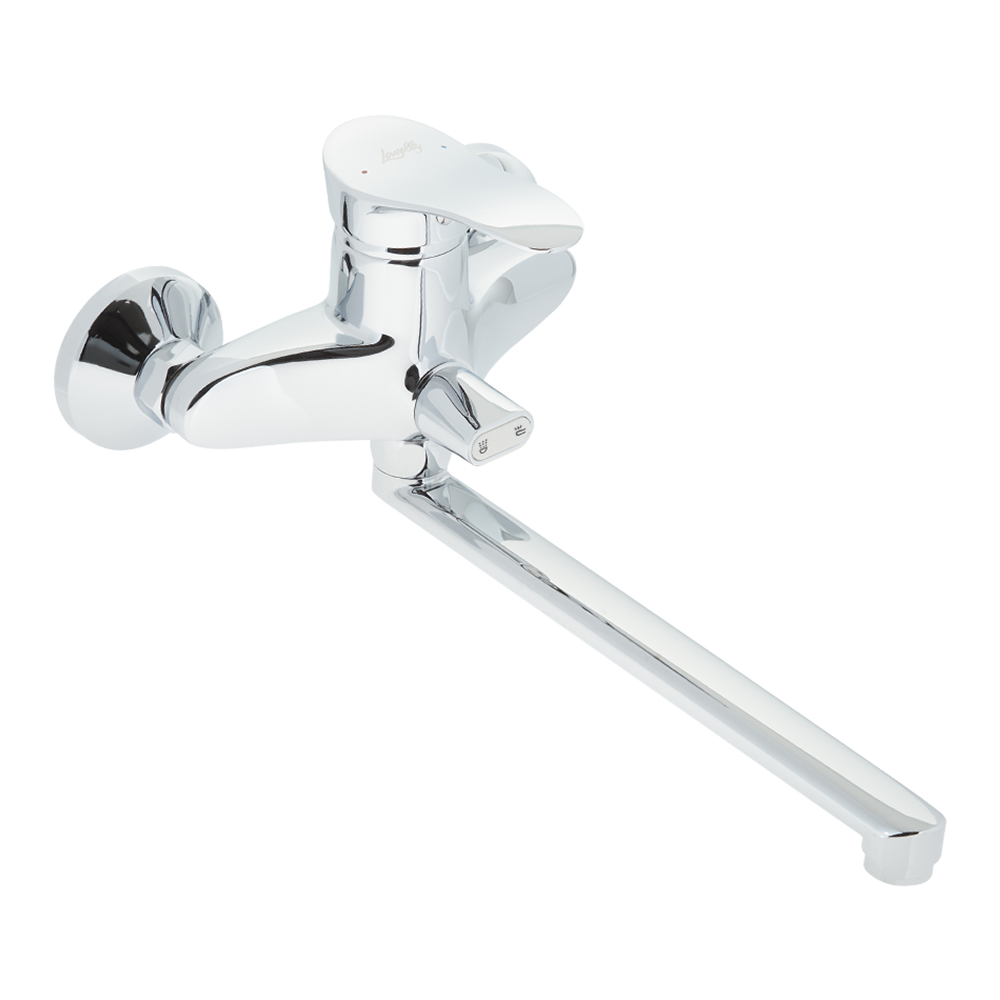 Предназначен для ванны и душа с длинным изливом однорычажный без лейки