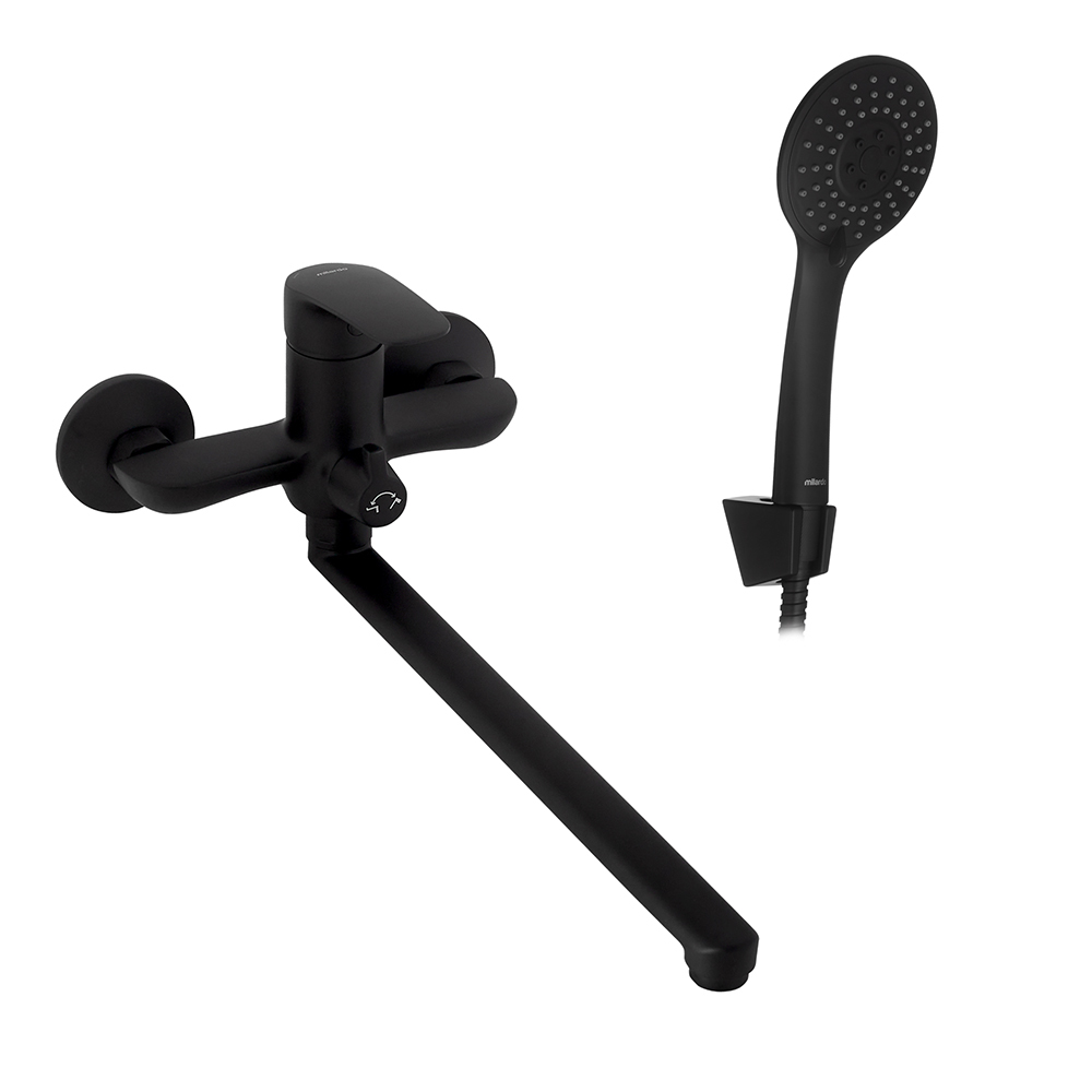 Смеситель для ванны Milardo Rora черный однорычажный с длинным изливом с лейкой (RORBL00M10)