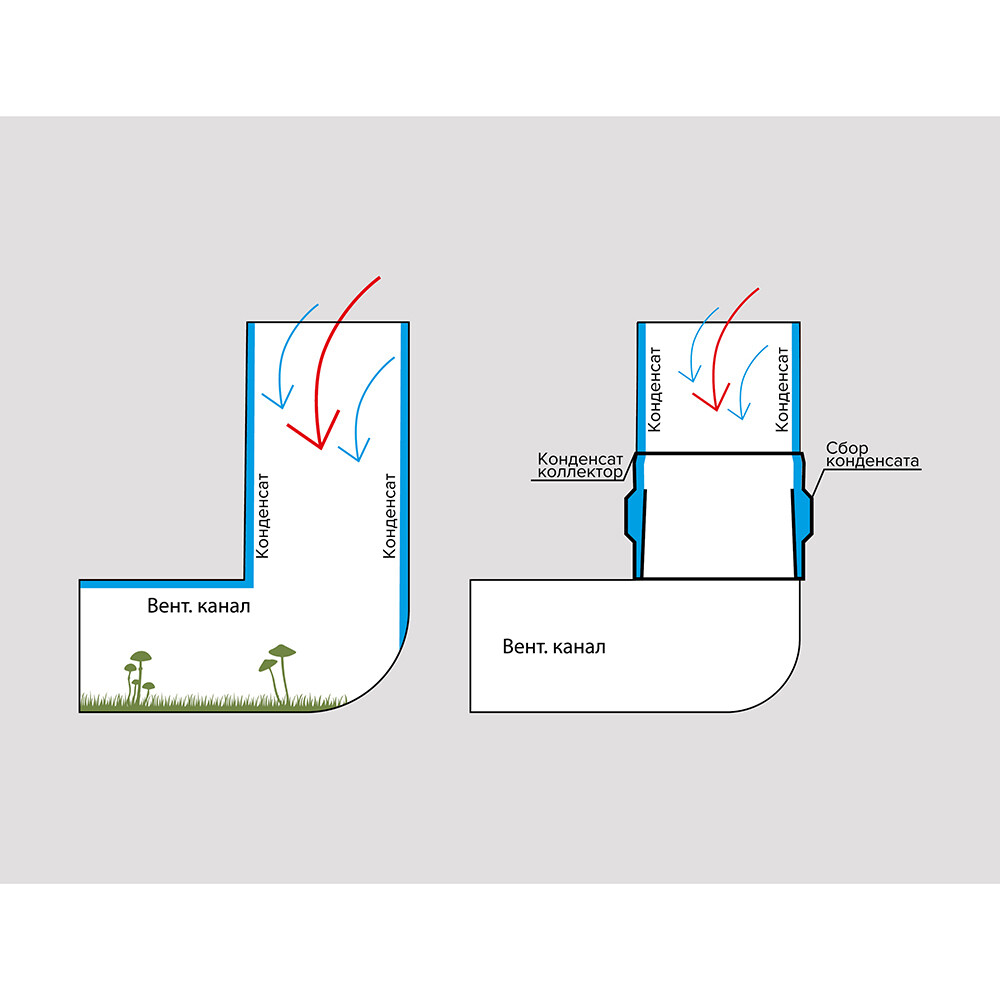 Коллектор для сбора конденсата применяется при устройстве вертикального вентиляционного канала. Предназначен для сбора излишней влаги из воздуховодов.