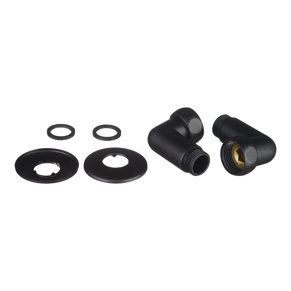 Угловое соединение для подключения полотенцесушителя. Изделие выполнено из латуни. Цвет «Черный Муар», изделие матовое благодаря специальной технологии окрашивания. Рабочая температура до 100°C, рабочее давление до 10 бар.