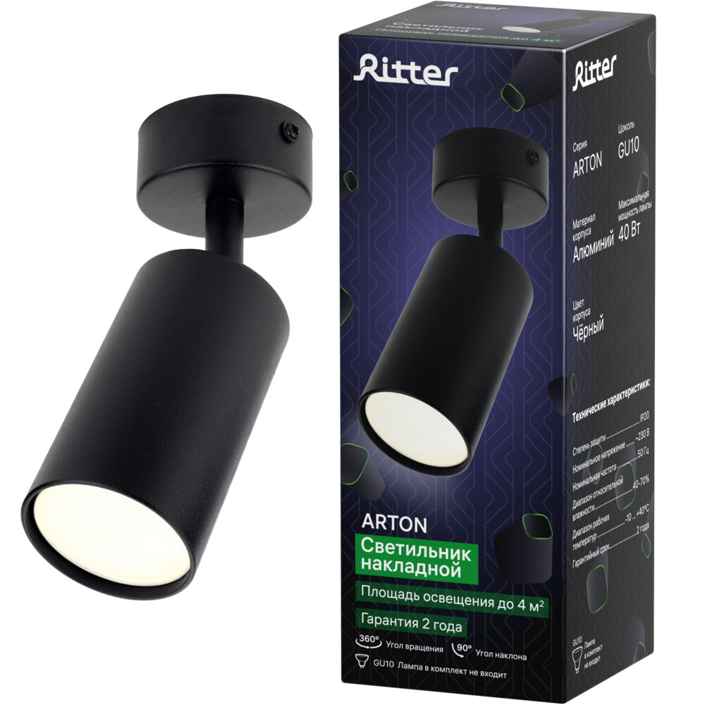Спот Ritter Arton GU10 40 Вт 4 кв.м черный IP20 (59965 4)