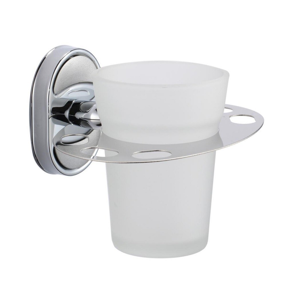 Настенный держатель со стаканом из матового стекла выполнен из нержавеющей стали с хромированным покрытием.