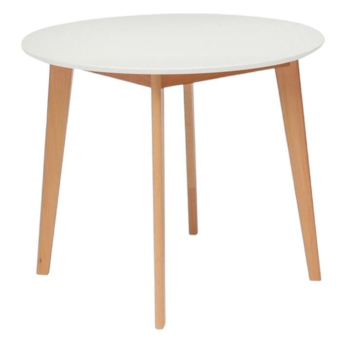 Компактный и аккуратный стол отлично подойдет даже для небольших помещений. Столешница, покрашенная в белый цвет сочетается с ножками цвета натурального дерева. Хорошо впишется в любой современный интерьер. Столешница круглой формы. Ножки изготовлены из натуральной экологически чистой древесины — массива бука. Столешница из МДФ со шпоном бука и глянцевым напылением не требует специального ухода, выдерживает воздействие жидкости и тепла.