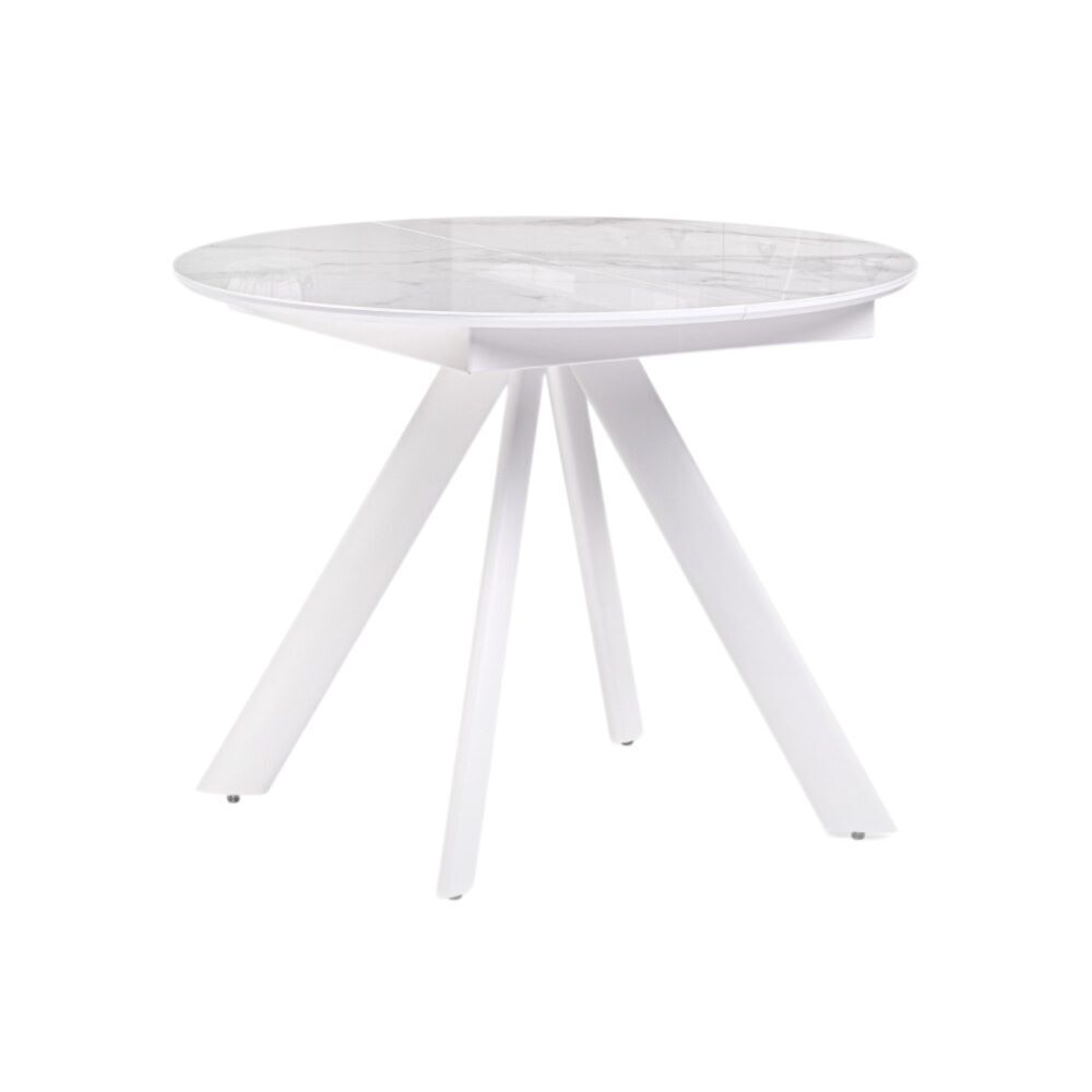 Стол кухонный раздвижной круглый d1 м стеклянный белый мрамор/белый Галвестон (532393)
