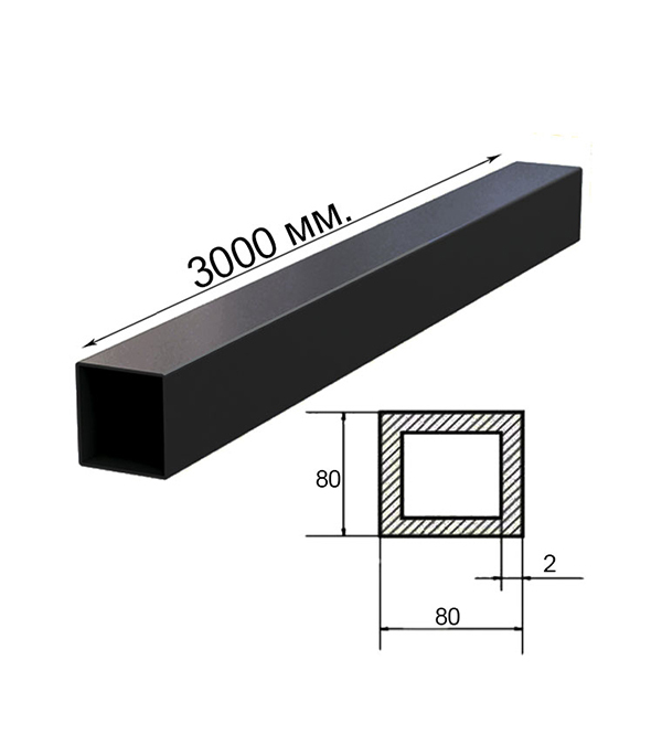 Столб для ворот и калиток 80х80х2 мм 3 м грунт черный