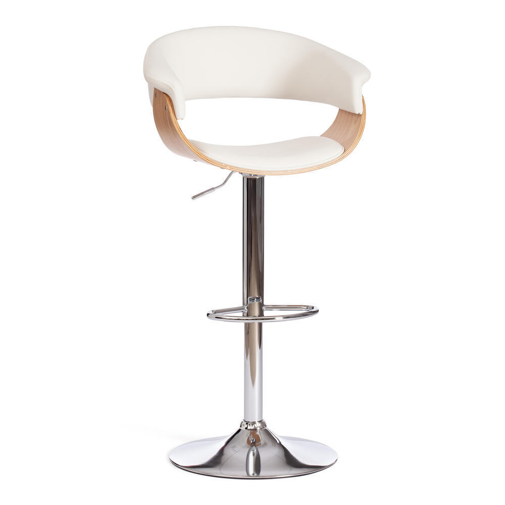 Светлая обивка из экокожи неприхотлива в уходе и долговечна. Круглое основание из стали с хромированным покрытием придает стулу большую устойчивость. Поролоновый наполнитель сиденья и спинки, удобная подставка для ног и возможность регулировки высоты.