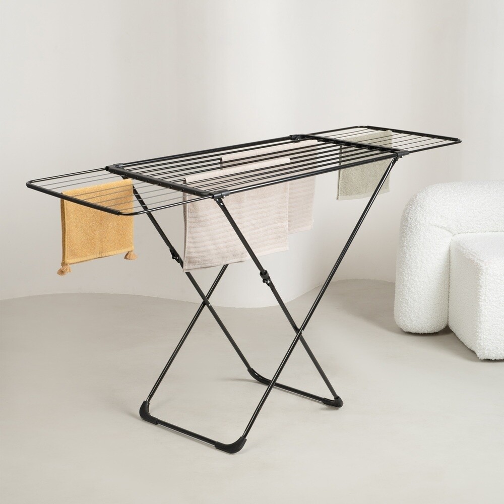 Сушилка выполнена в стильном черном цвете, а прочные трубки не оставляют следов и заломов на белье и одежде и обеспечивают более быстрое высыхание.