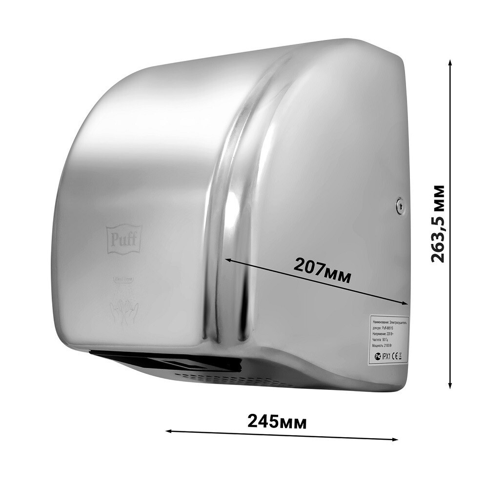 Сушилка для рук Puff антивандальная 2100 Вт хром (8851S)