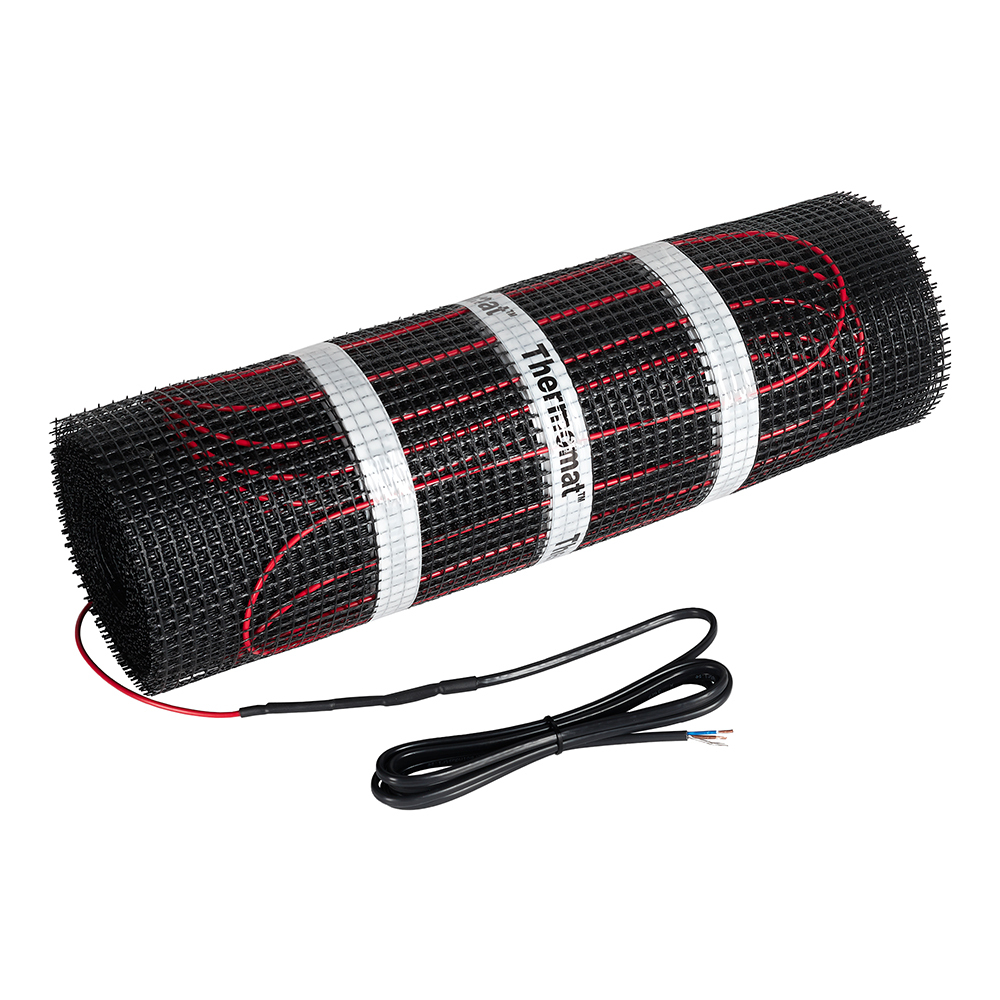 Предназначен для устройства «теплого пола» в ванных комнатах и санузлах, в прихожих, на кухнях, детских комнатах, балконах, лоджиях и др. помещениях в зданиях с неотапливаемым подвалом или над арками, т.е. в тех помещениях где теплопотери через пол больше обычных. Представляет собой тонкий двухжильный нагревательный кабель, закрепленный на сетке из стекловолокна шириной 50 см. Устанавливается под практически любое напольное покрытие: в слой плиточного клея под кафельную плитку, или под ламинат и линолеум (при условии заливки термомата в слой самовыравнивающейся смеси). Так же можно укладывать теплый пол на старую плитку.