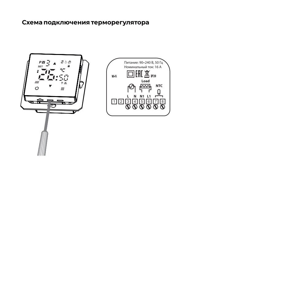 Комплектация: упаковка, терморегулятор, выносной датчик NTC, инструкция.