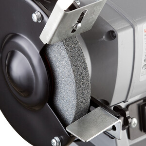 Комплектация: точило, шлифовальные круги, светодиодная лампа, прозрачные экраны, искрогасители, рабочие упоры, коробка.