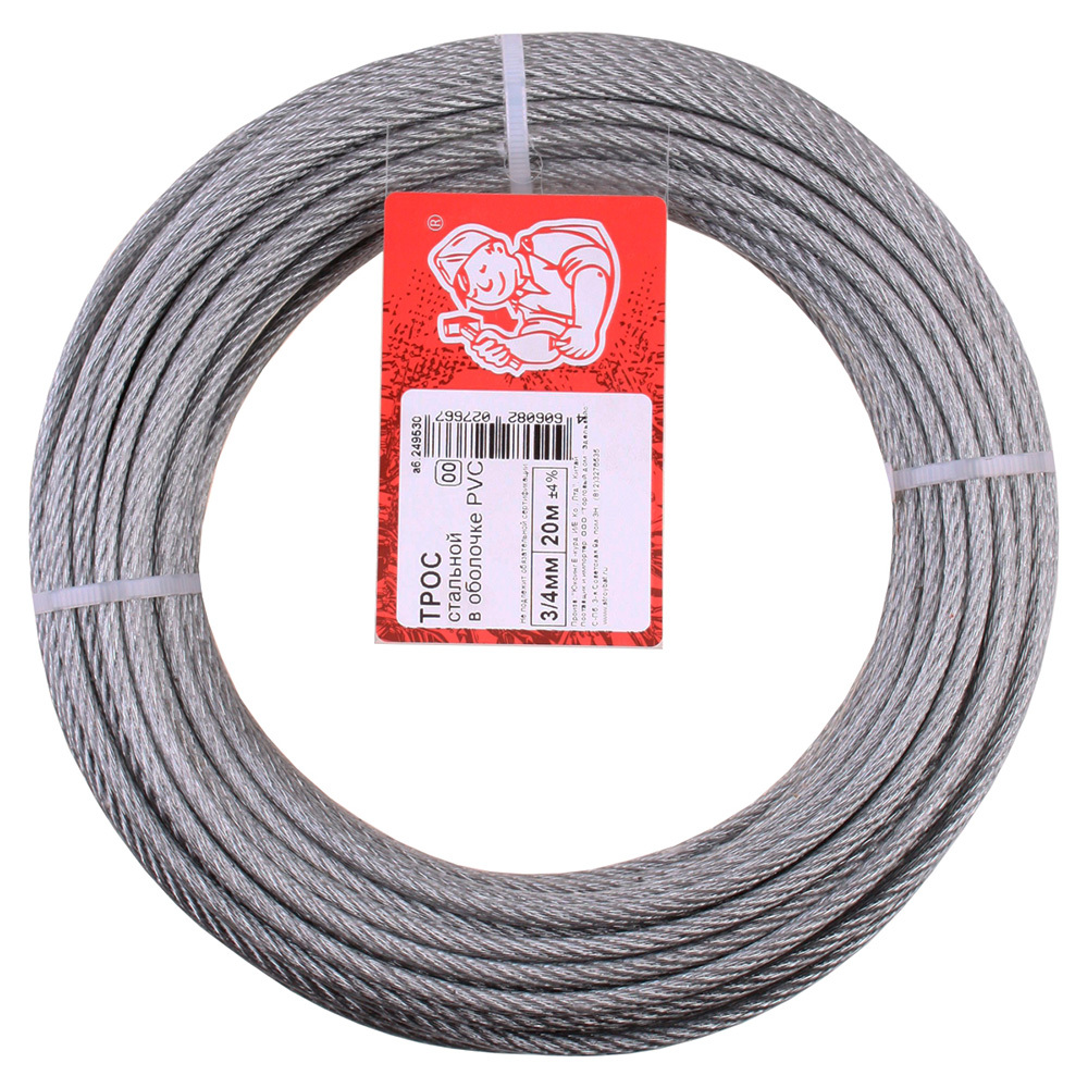 Трос стальной оцинкованный в оболочке d3-4 мм (20 м)