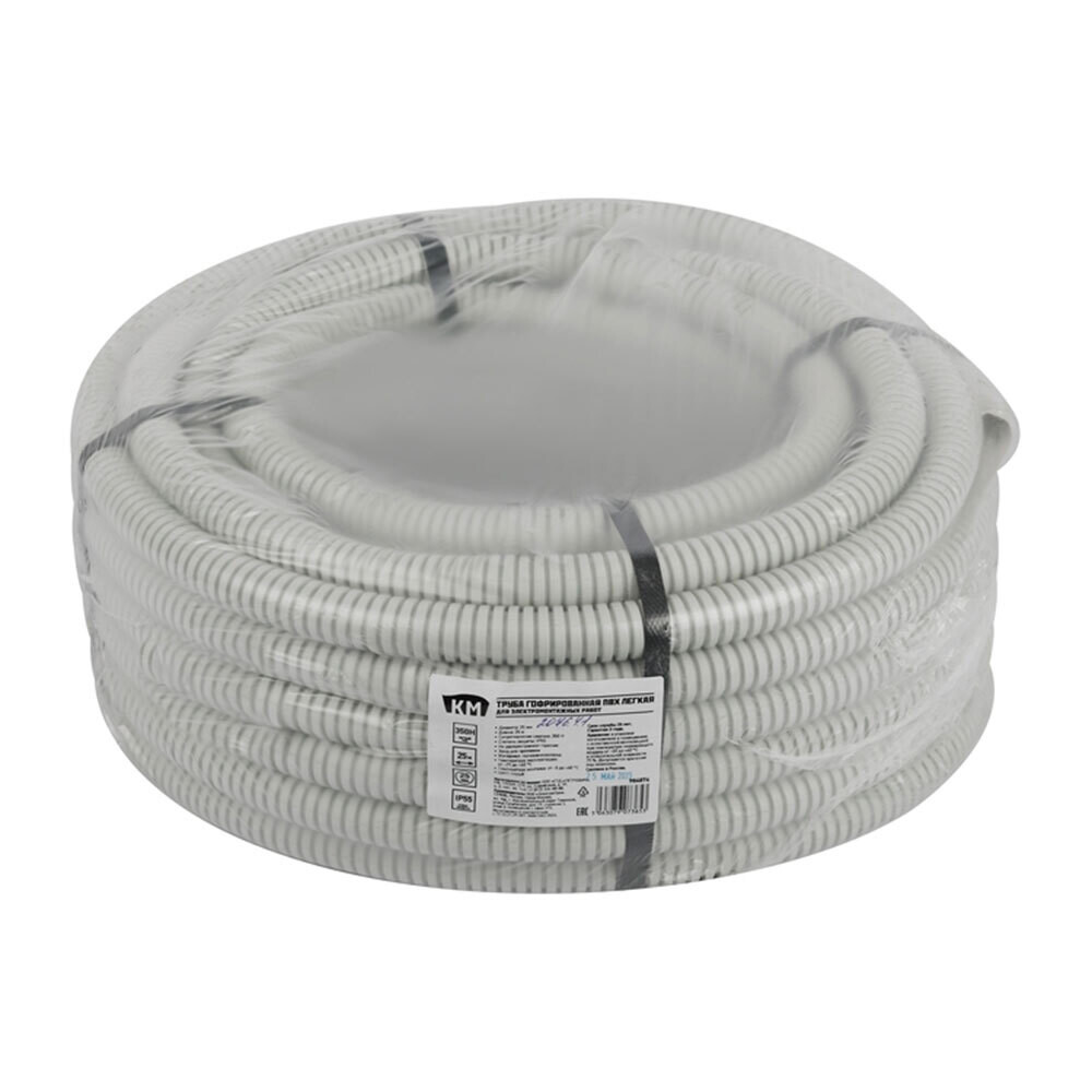 Труба гофрированная ПВХ 25 мм КМ легкая с зондом серая (25 м) (Б0060605)