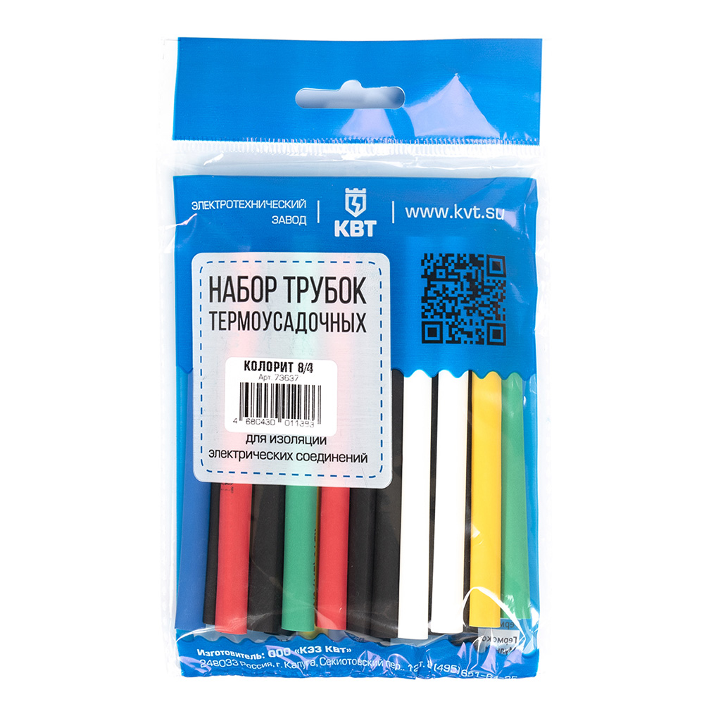 Трубка термоусадочная КВТ Колорит ТНТ HF 8/4 мм 100 мм 6 цветов (20 шт.)