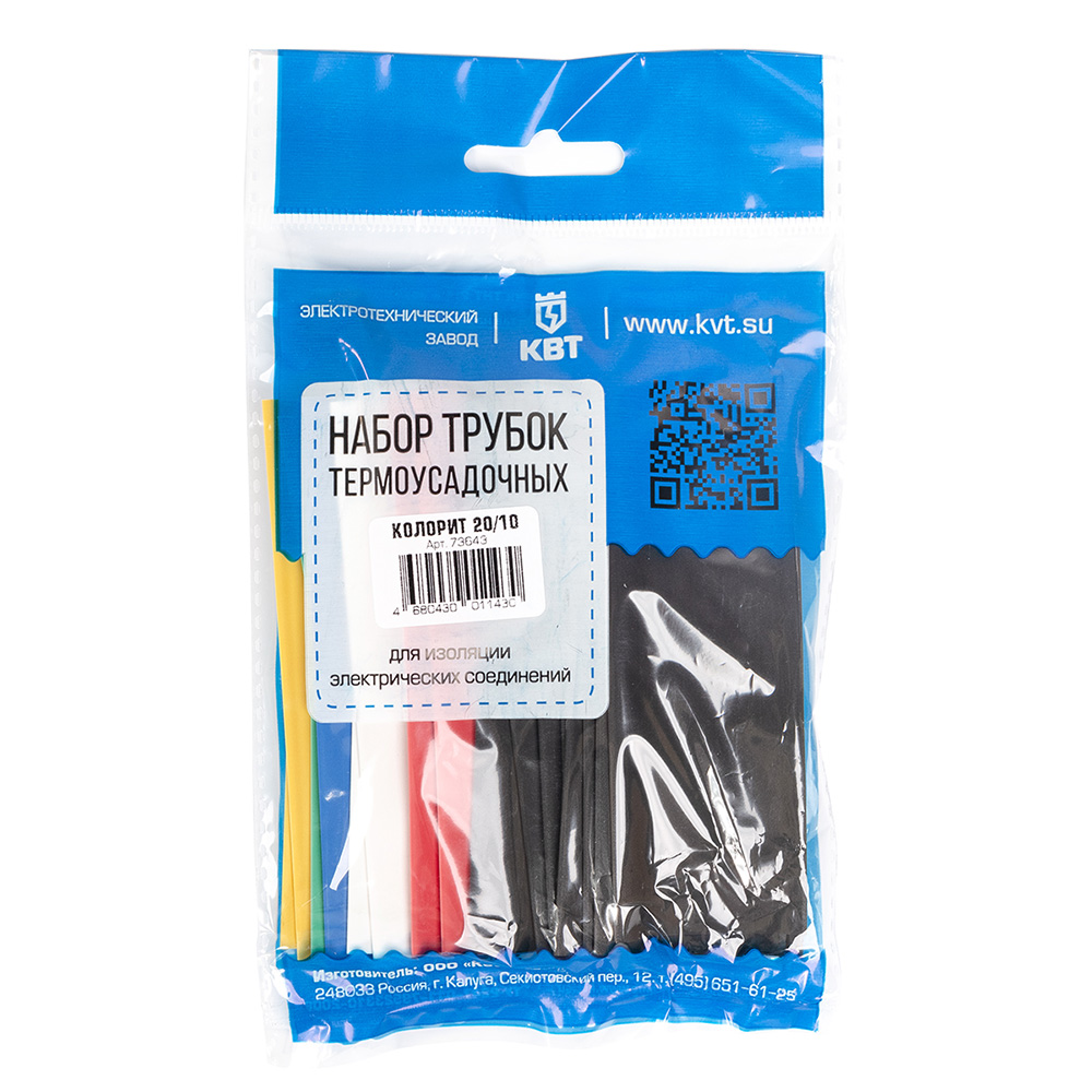 Трубка термоусадочная КВТ Колорит ТНТ нг 20/10 мм 100 мм 6 цветов (20 шт.)