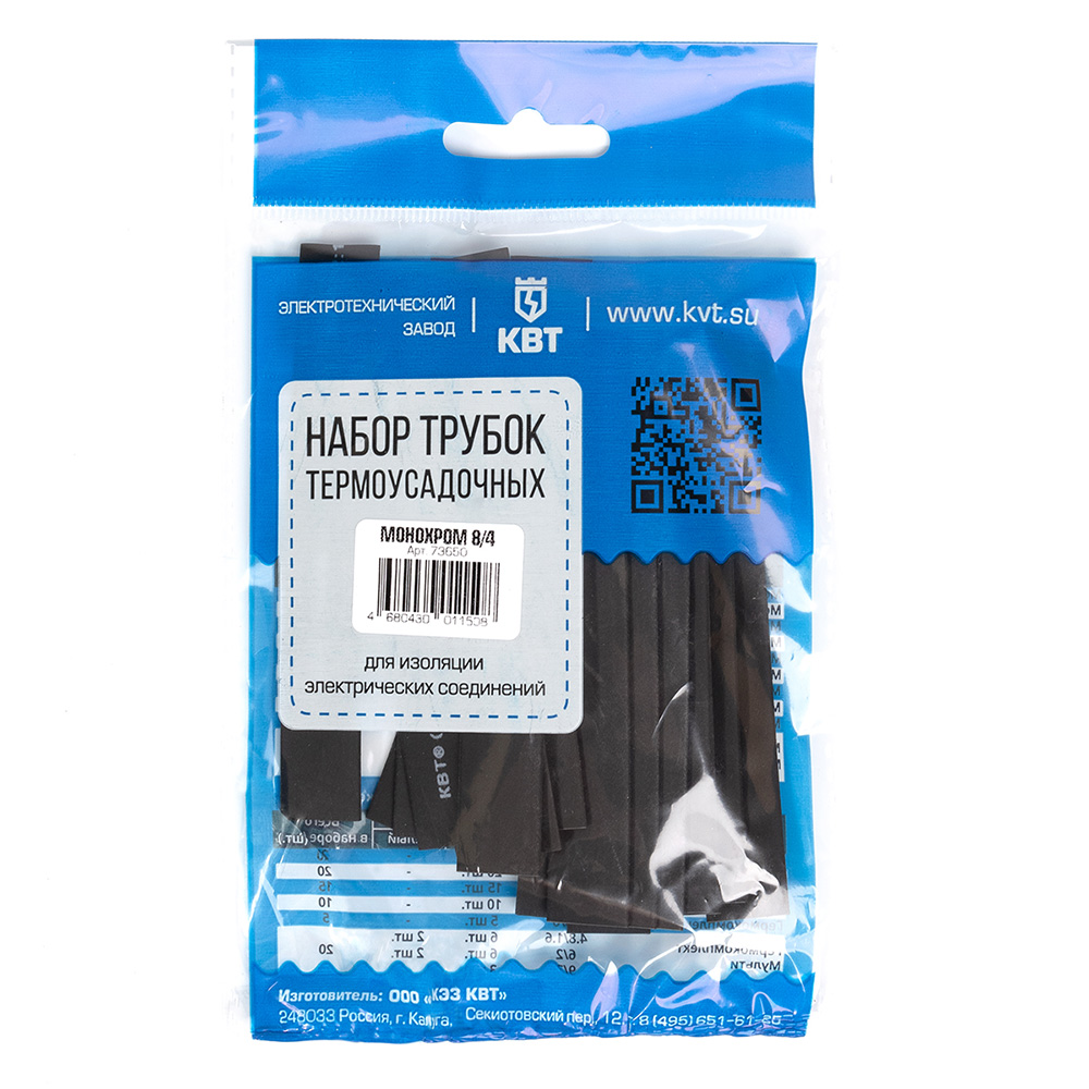 Трубка термоусадочная КВТ Монохром ТНТ нг 8/4 мм 100 мм черная (20 шт.)
