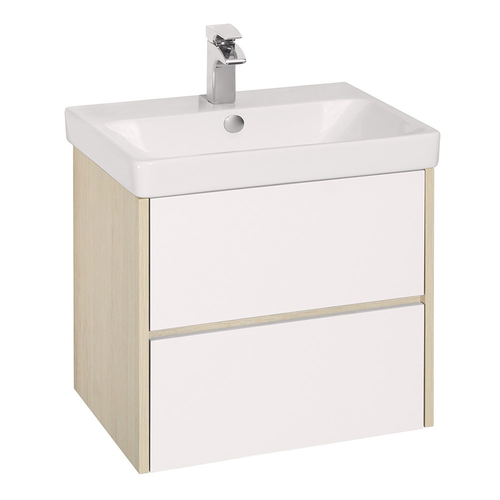 Предназначена для ванной комнаты. Тумба Сканди выполнена в популярном минималистичном скандинавском стиле. Корпус тумбы выполнен из влагостойкой ЛДСП в декоре натурального дерева, а фасады в белой глянцевой покраске. Конструктивно тумба состоит из 2 вместительных ящиков, установленных на направляющие с интегрированной системой push-to-open для комфортного использования. На тумбе нет выступающих деталей и фурнитуры, открытие ящиков реализовано нажатием на фасад. Тумбу по желанию можно использовать в двух вариантах: как подвесную или дополнительно приобрести опоры. Раковина приобретается отдельно.