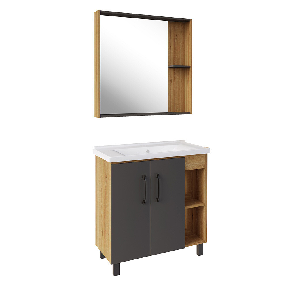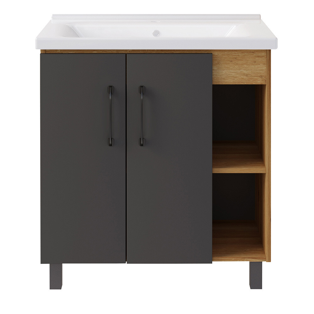 Тумба под раковину АСБ-Мебель Агата 80 см напольная дуб крафт/серая (80062)