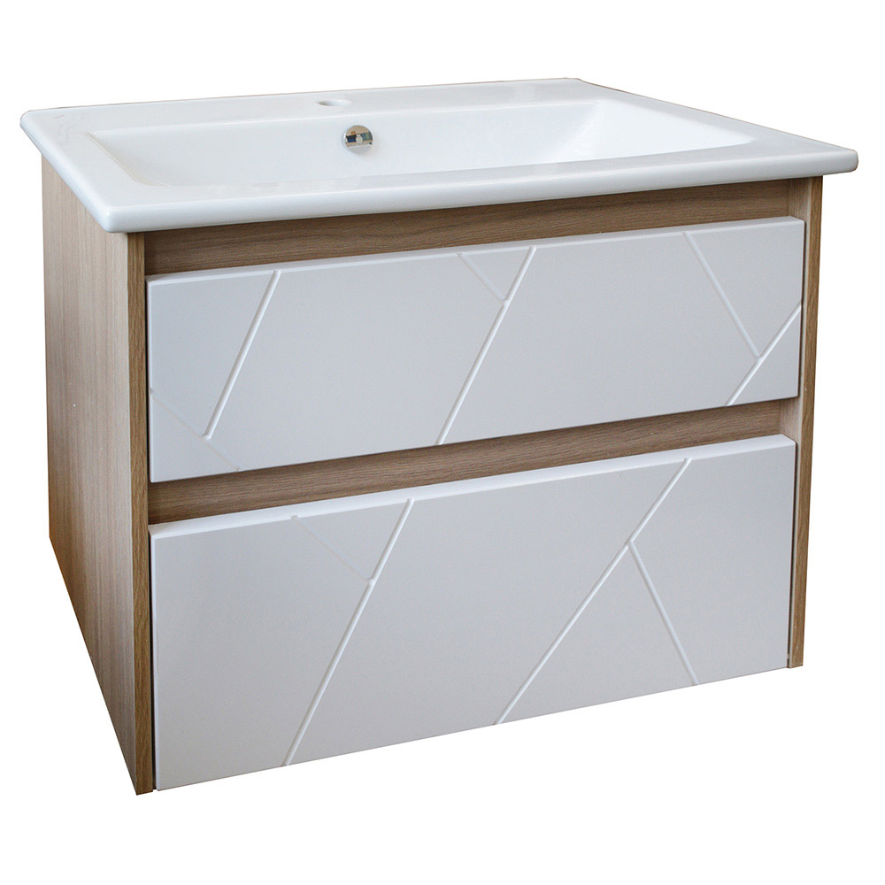 Тумба под раковину АСБ-Мебель Диана 60 см подвесная белая/дуб янтарный (12027)